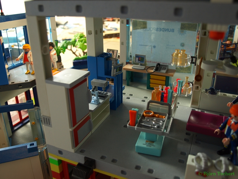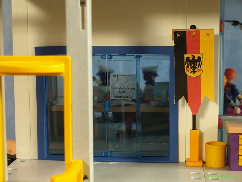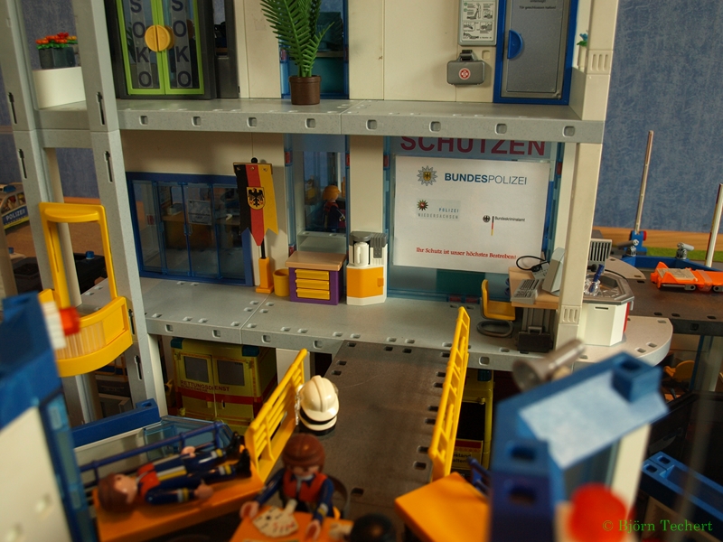 In ihr befindet sich die Landespolizei, Bundespolizei, Europol, Bundeskriminalamt, Labor und Messtechnik, Rechtsmedizin und Zellen. Außerdem ist stehen im Erdgeschoss der RTW und das NEF der Bundeswehr.
