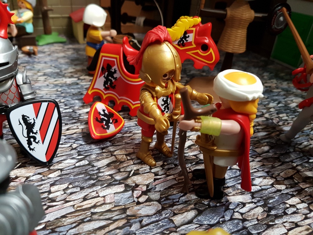 "Herzlich willkommen zu Hause, Schwesterchen," sagt der goldene Ritter. "Schön, dass du wieder da bist, wir haben dich schon schmerzlich vermisst!"