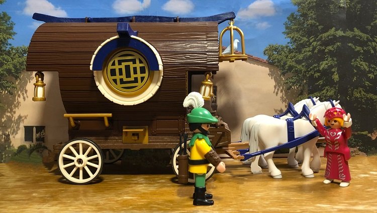 Sie öffnete die Augen, nein, riss sie geradezu auf und rief verwundert: „Was – ist – das - denn?“ Sie erblickte zwei kräftige, stolze weiße Kaltblutpferde, die offensichtlich eine große Kutsche zogen. Hubertus errötete vor Stolz und erklärte: „Ihr habt mir doch auf der Herfahrt von Eurer pferdelosen Wohnkutsche für die neue Welt erzählt. Als ihr fort wart, haben wir uns mit unserem Erfinder Goswind Luftikus zusammengesetzt und er hat schließlich für Euch diese Kutsche hier geplant. Unsere Handwerker haben großartige Arbeit geleistet um diese Kutsche für Euch entstehen zu lassen.“ Fredeswind erwiderte etwas verlegen: „Was für eine großartige Idee! Tausend Dank! Tausend Dank! Wie soll ich Euch das jemals vergelten?“ Da erwiderte Hubertus: „Ihr tut so vieles für unser Land, da können wir Euch auch einmal etwas Gutes tun!“ „Dann wollen wir die Wohnkutsche doch gleich ausprobieren.“ Und so fuhren sie los. Die Kutsche war ausgesprochen bequem und Fredeswind genoss die Heimfahrt in vollen Zügen. Zwei Tage später trafen sie in der Burg Adlerhorst ein und Fredeswind nahm wieder ihre Regierungsgeschäfte auf.