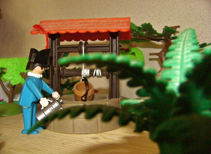 Aber er verlor den Mut nicht, lief mit dem Krug wieder zum Brunnen zurück und schöpfte aufs neue Wasser.