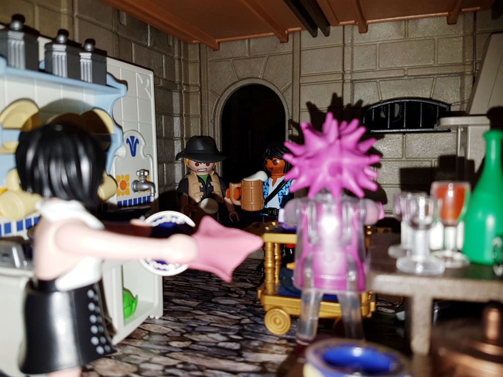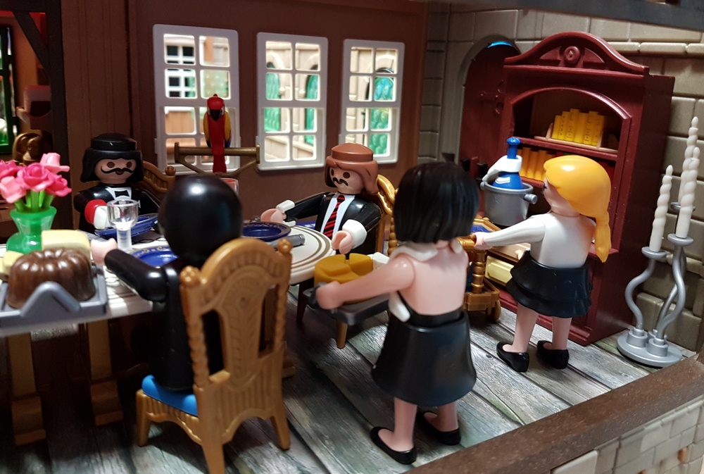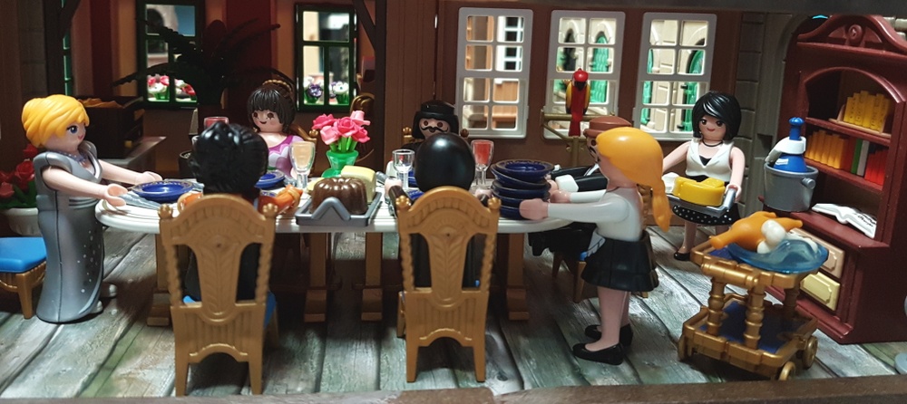 Mittlerweile ist es fast 9 Uhr Abends. Die Sonnensteiner und ihre Gäste haben sich durch sechs Menügänge gegessen, jetzt gibt es nur noch Nachtisch. Bisher waren ihre Tischgespräche nicht weiter spannend, dafür spüren Maria und ich unsere Füße fast nicht mehr. Wann ist dieser Abend endlich zu Ende?