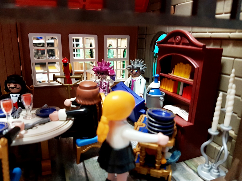 Auf einmal öffnet sich die Tür. "Bi-biiieep" kündigt die Robotermartha einen späten Gast an.