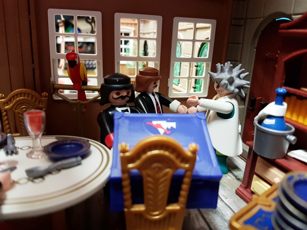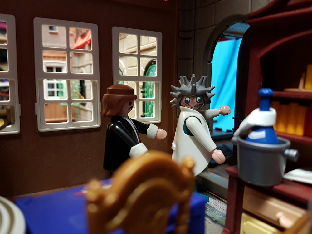 "Mein sehr verehrter Herr von Sonnenstein," beginnt der späte Gast mit schleimender Stimme, "ich wollte es mir nicht nehmen lassen, meine Wahre heute Abend höchstpersönlich abzuliefern. Bitte, überzeugen Sie sich von der hohen Qualität meiner Arbeit!"