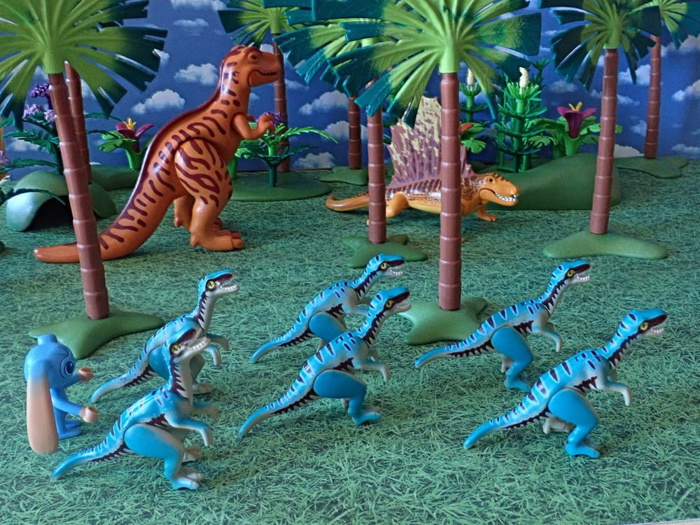 Die Velociraptoren bleiben nicht lange allein. Die machen so viel Krach,