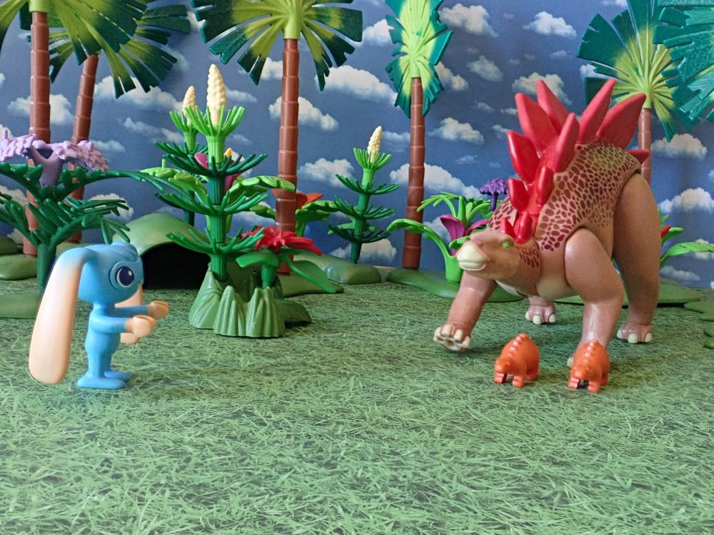 Die Stegosaurusmama sieht eigentlich ganz nett und wirkt auch noch