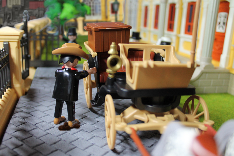 Jerry sprang von der Kutsche.