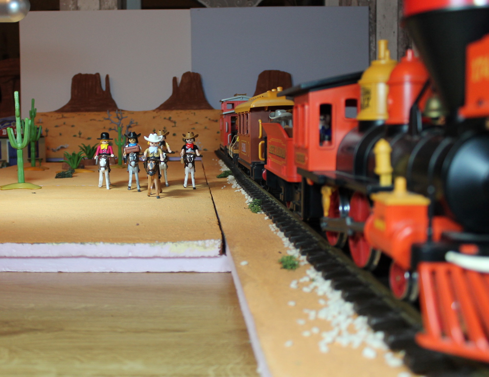 Der Hintergrund ist ebenfalls als Styrodur. Ich habe mich da für die berühmten Monument Valley Felsenlandschaft entschieden. Typisch Western eben.