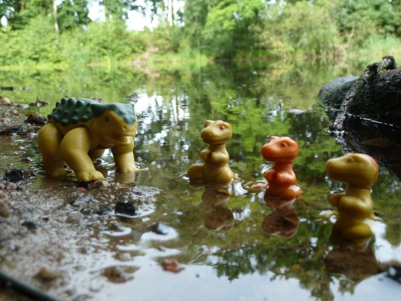 Heute hatten die Dinos einen entspannten Tag. Auf ihrer Wanderung waren sie wieder an einen See gekommen und waren baden: