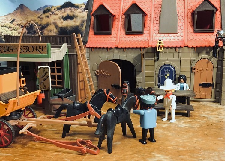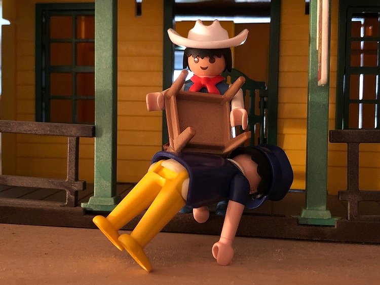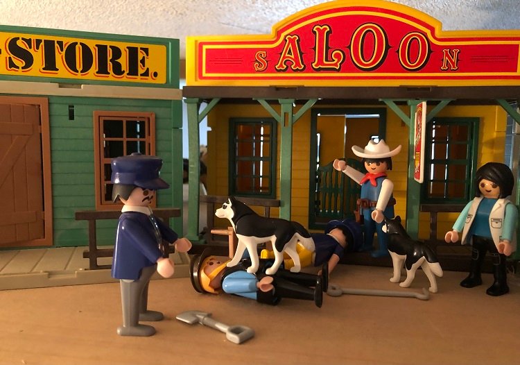 Plötzlich ertönte Geschrei aus der Richtung des Saloons, es schepperte und krachte. Da hatte doch tatsächlich einer einem anderen einen Stuhl übergebraten. Der Betroffene ging in die Knie und jaulte vor Schmerzen.