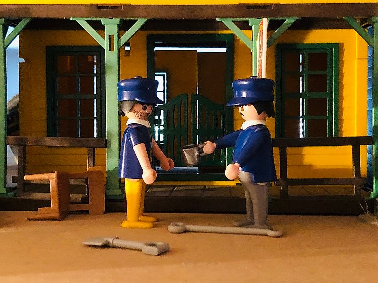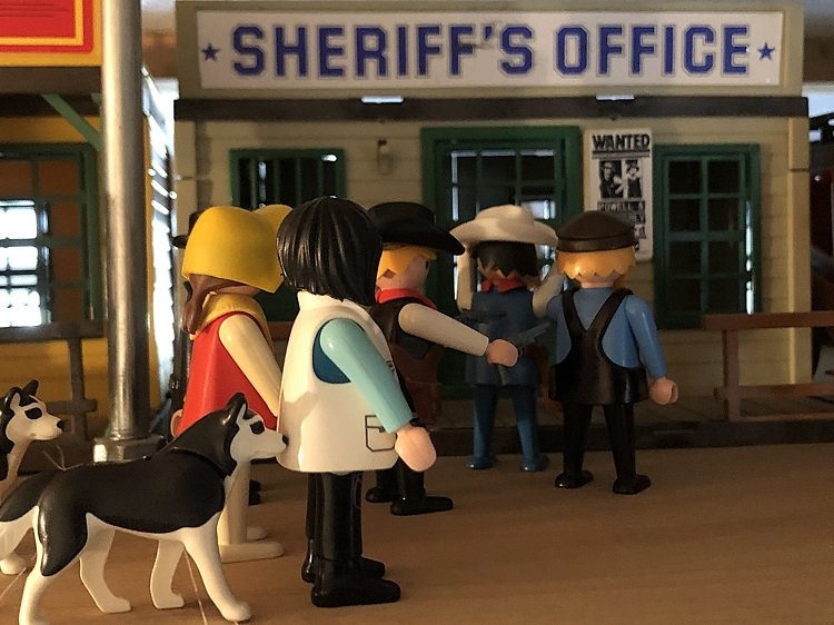Nun erschien der Sheriff Tom Linkerton auf der Bildfläche, das laute Hundegebell hatte ihn auf den Plan gerufen. Er nahm die beiden Missetäter fest und verfrachtete diese in die Gefängniszelle.