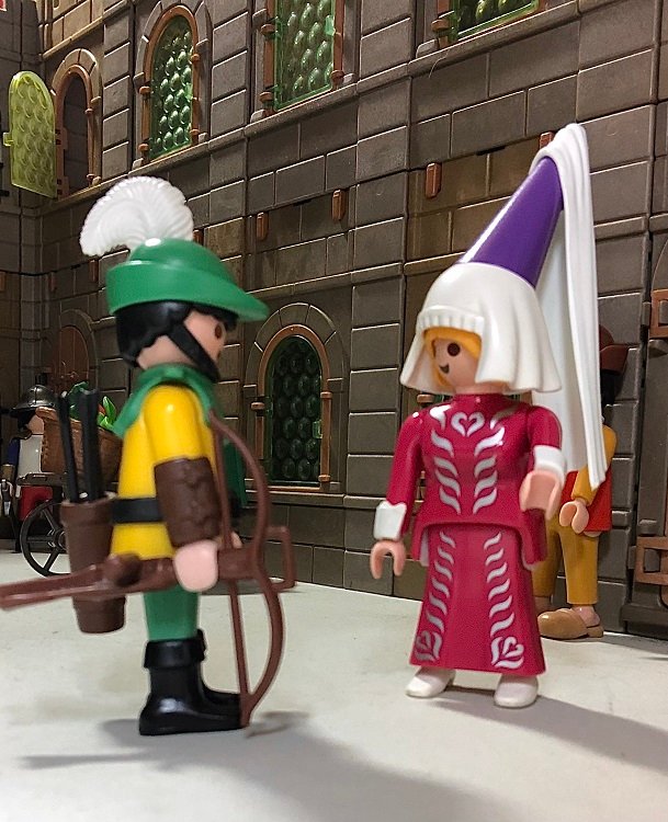 Der Mann machte einen Diener und sprach: „Seid gegrüßt! Könnte es sein, dass Ihr Fanny aus der kleinen Stadt mit ihren zwei Hunden seid?“ Sie nickte und überlegte kurz, was sie sagen sollte. Dass man sich hier etwas anders ansprach, daran würde sie sich schon noch gewöhnen. Also versuchte sie ihr Glück: „Ja, ich bin Fanny und das sind Anuk und Kuna.“, stellte sie ihre Hunde vor. „- Ihr habt mir was voraus, und mit wem habe ich die Ehre?“ Er dienerte erneut: „Ich bin Hubertus, der königliche Hofjäger Ihrer Majestät Königin Fredeswind.“ „Von Euch habe ich schon gehört., Fredeswind, pardon, Ihre Majestät haben gelegentlich von Euch erzählt.“ Hubertus errötete, drehte sich rasch um und winkte Fanny ihm zu folgen.