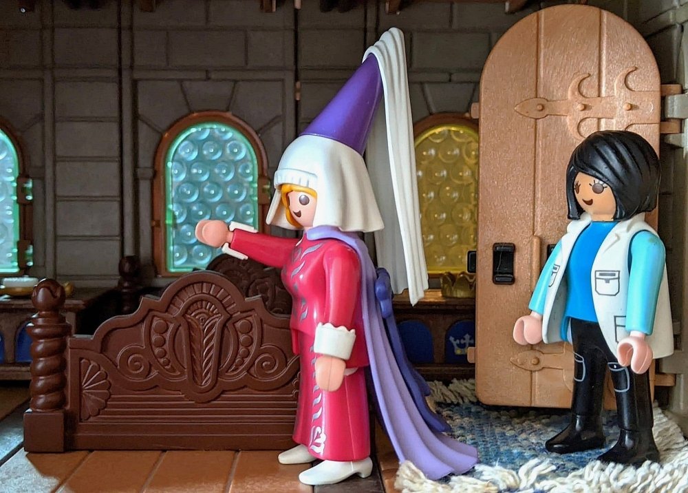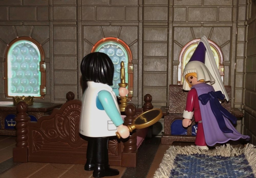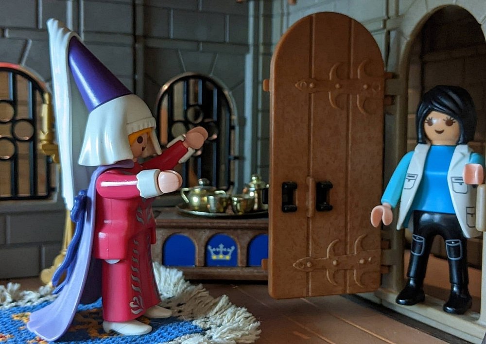 Daraufhin antwortete ich mit einem freundlichen Lächeln im Gesicht: "Ich bin hier um die Königin Fredeswind zu besuchen."
