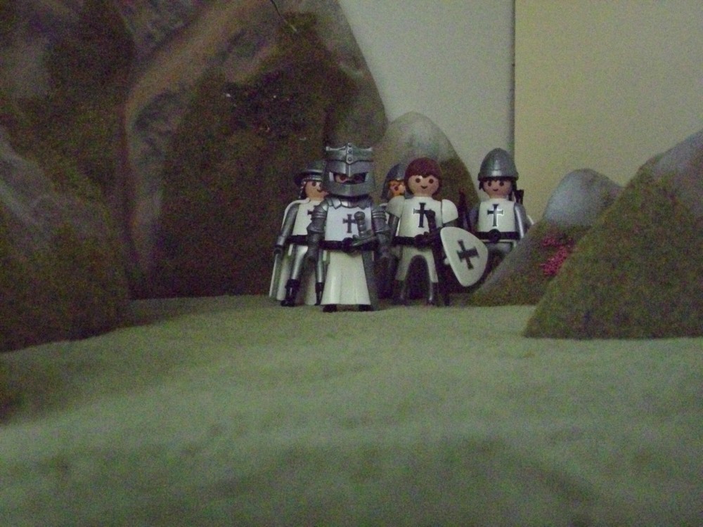 Etwa zur gleichen Zeit ist eine kleine Truppe der bischöflichen Armee zu Fuß unterwegs zur Burg des Baron zu Wolfeck .