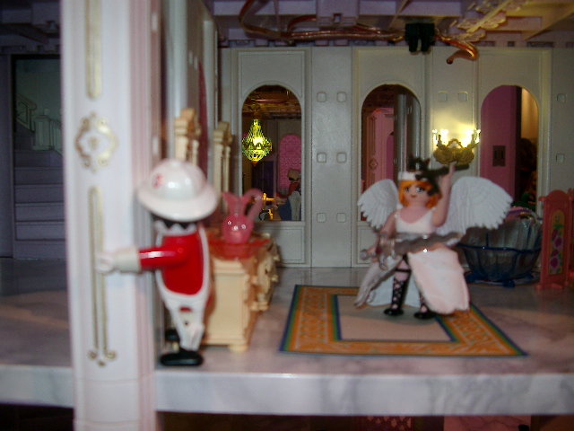 Allerdings war die Jagd noch nicht beendet. Das Bengerl hatte sich wieder mal in einen unstillbaren und unbegründeten Rachewahn versetzt und trieb den König durch die Räume des Schlosses, welches sie vorher noch so einträchtig zusammen gebaut hatten.