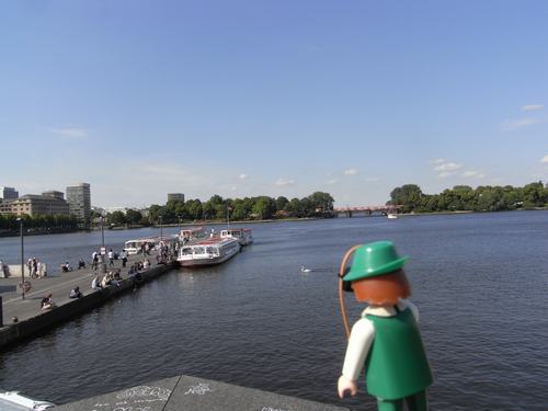 Hamburg ist wirklich eine grüne Stadt - hier ein Bild von der Binnenalster mit den Alsterschiffen...im Hintergrund ein ICE ... vielleicht DER nach Bremen?