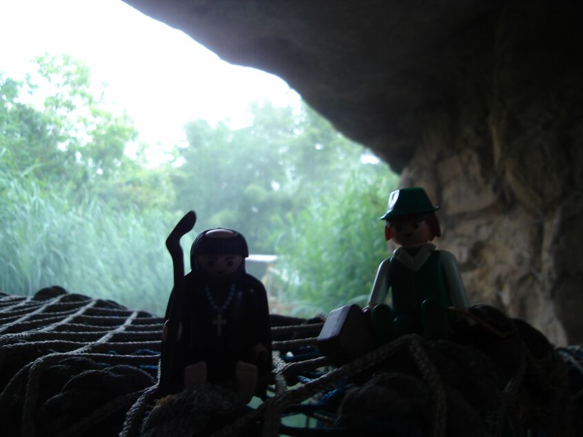 Weil das Wetter nicht gerade berauschend gewesen ist, habe ich mir von Bruder Tuck eine Regenjacke, einen Südwester und einen Schirm geborgt. Schließlich wollte ich meine frisch gewaschenen Sachen nicht schon wieder waschen und trocknen müssen.