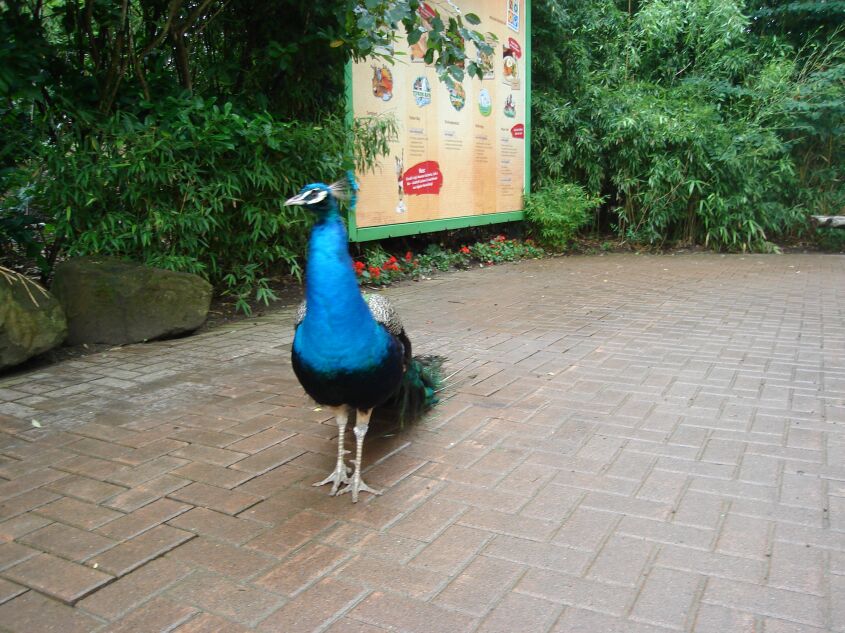 In letzter Sekunde zog Bruder Tuck mich, nachdem wir fast eine Veterinär-HNO-Untersuchung bei dem grauen Riesen live und quasi endoskopisch miterleben konnten, zurück und wir machten uns langsam auf den Weg zu unserem nächsten Ziel. Schließlich gab es in Hannover ja noch soooo viel zu entdecken! Verabschiedet wurden wir von einem Pfau und haben versprochen, auf jeden Fall wieder zu kommen, denn hier kann man wirklich sehr viel sehen und erleben! Da alles so aufregend war, haben wir leider immer wieder vergessen zu fotografieren. Wenn ihr wollt, könnt ihr Euch hier mal einen Eindruck verschaffen, was wir sonst noch alles so gesehen haben...
