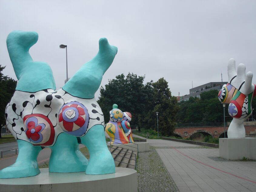 Es ist wirklich nur ein Zufall, dass wir uns als nächstes die 3 Nanas von Niki de Saint Phalle am Leibnizufer anschauen. Diese 3 vielleicht etwas gewöhnungsbedürftigen Damen sorgten in den 70er Jahren, als sie nach Hannover kamen für große Aufruhr. Es dauerte lange bis sich die Hannover mit dieser "Kunst" abgefunden haben. Heute würde sie wohl kein Hannoveraner mehr missen wollen, sie sind zu einem der wichtigsten Wahrzeichen Hannovers avanciert. Niki de Saint Phalle hat Hannover einen Großteil ihrer Werke vermacht und so hat Hannovers Sprengelmuseum die größte Niki de Saint Phalle Sammlung außerhalb Frankreichs.