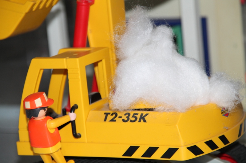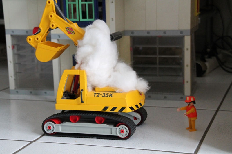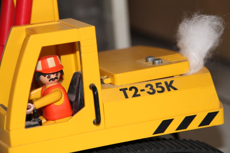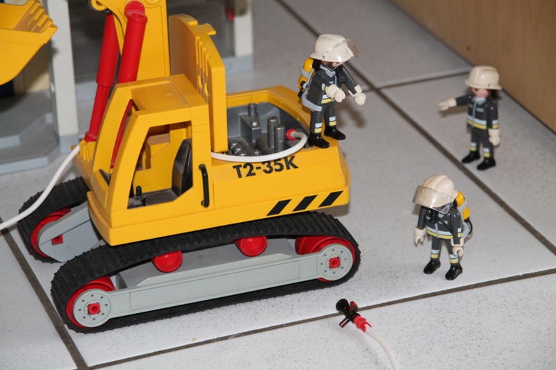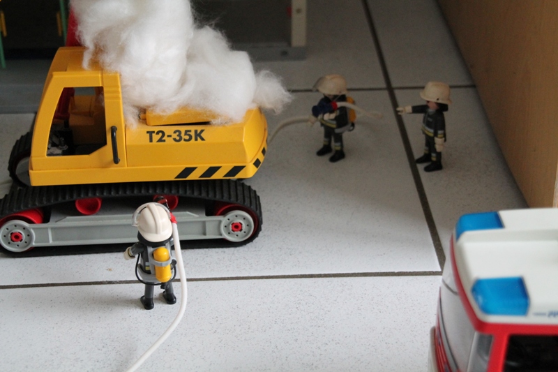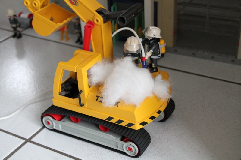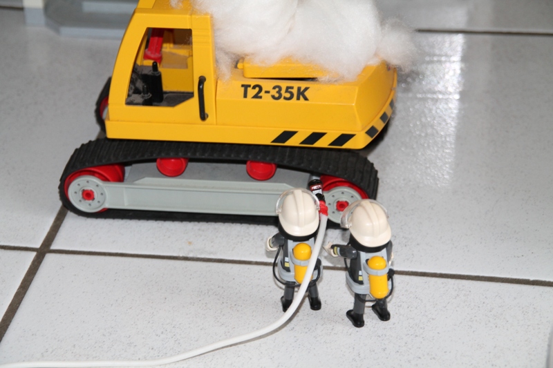 Baggerführer Krause ist heute damit beschäftigt, vor dem alten Postamt ein Rohr freizulegen. Plötzlich bemerkt Krause einen seltsamen Geruch. Es riecht irgendwie... verschmort! Sofort klettert er aus seiner Kabine, da sieht er das Malheur auch schon: Rauch dringt aus dem Motorraum! Sofort alarmiert Krause die Feuerwehr. Doch für seinen Bagger scheint jede Hilfe zu spät... "Hier Leitstelle, Brand eines Baggers, Hauptstraße 5 beim ehemaligen Postamt! Es rücken aus Einsatzleitwagen und beide HLF!" Minuten später treffen die Fahrzeuge am Brandort ein: Die Führungskräfte erkunden die Lage: