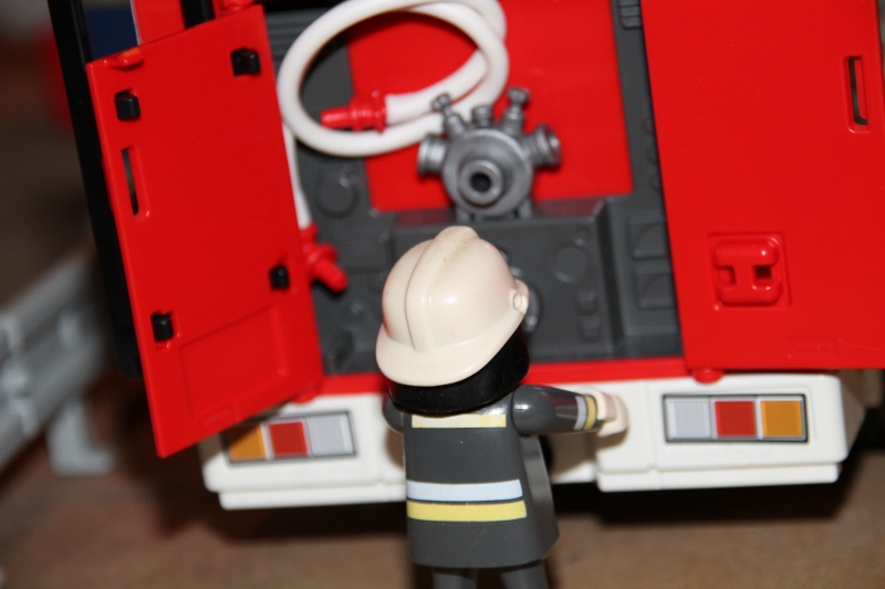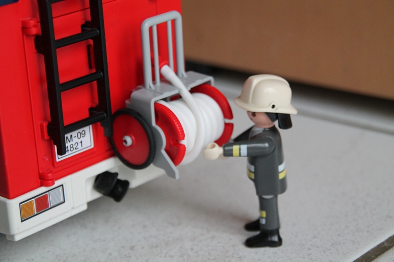 ...während der Maschinist die Pumpe schon startet und Wasser auf den Schnellangriff gibt