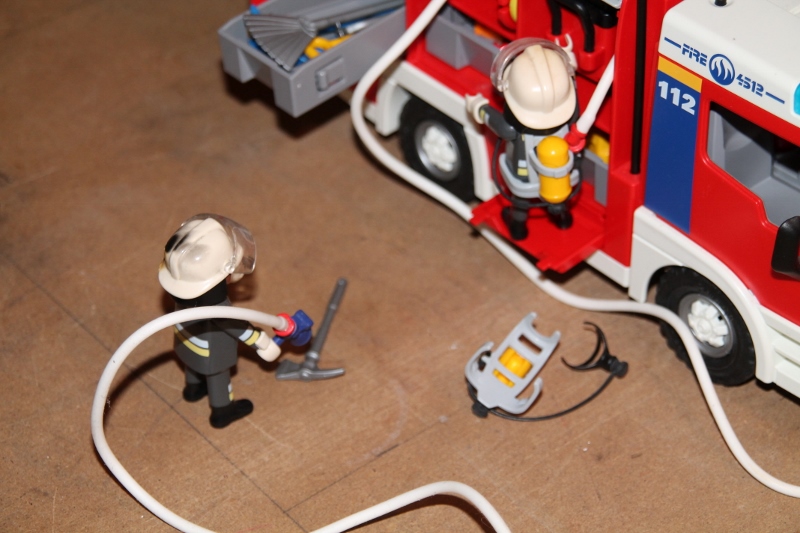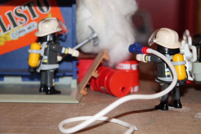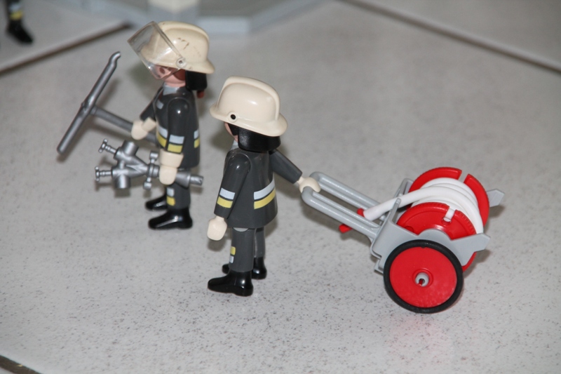 Währenddessen bereiten die anderen Feuerwehrmänner den Löschangriff vor.