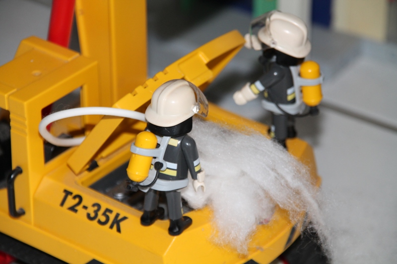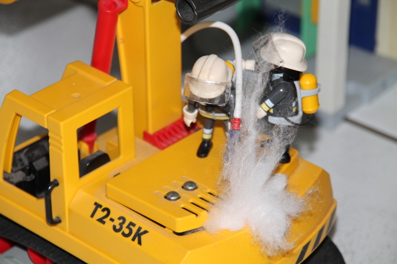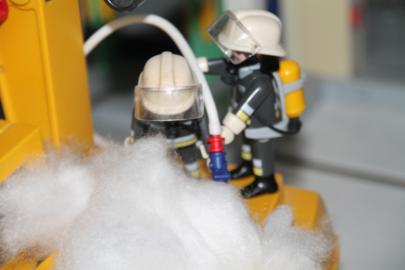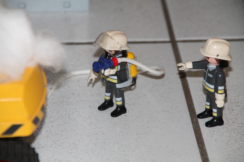 Gesagt, getan. Jetzt kann, während einer die Klappe aufhält, der andere gezielt den Brand im Inneren bekämpfen.