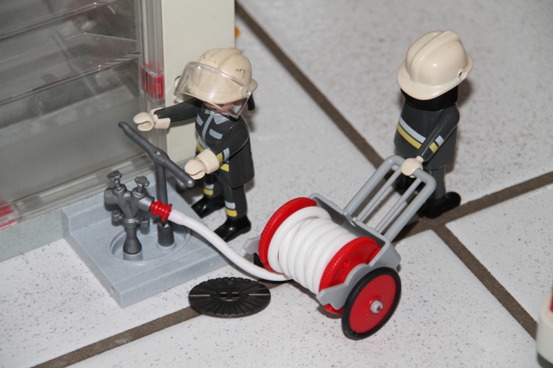 Unterdessen erteilt der Zugführer weitere Befehle. "Wasserversorgung vom Unterflurhydrant am Hauseck!"