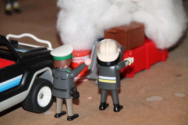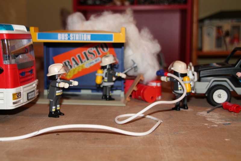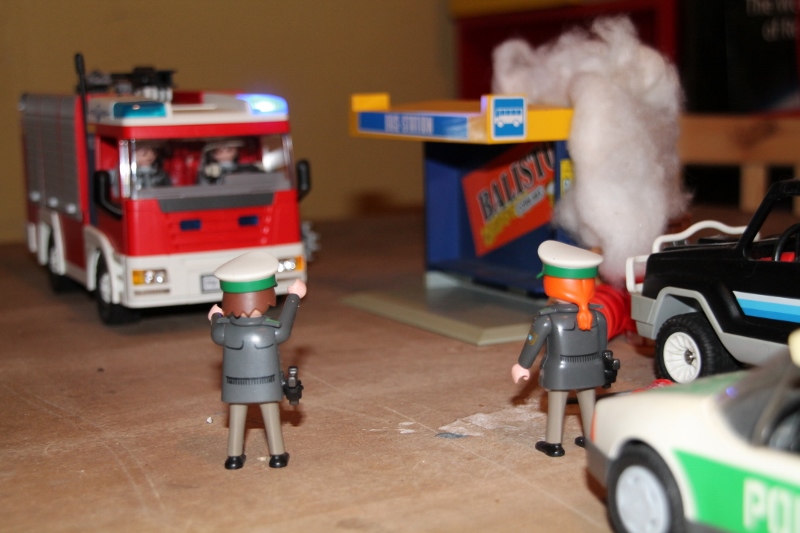 Dirk und Anna sind unterwegs auf Streife. Heute mussten sie den alten Streifenwagen nehmen, weil der neue zum TÜV musste... "Schau mal, da drüben! Da brennt was!", ruft Anna. "Ohje.. fahr da mal rüber!" Anna wendet den Streifenwagen ...und bleibt etwas hinter dem brennenden Bushäuschen stehen. "Ich versuche, den Brand mit dem Feuerlöscher einzudämmen. Funk die Leitstelle an, wir brauchen die Feuerwehr!" Fortsetzung folgt...