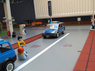Die Tankstellenbesitzerin wählt den Notruf 110