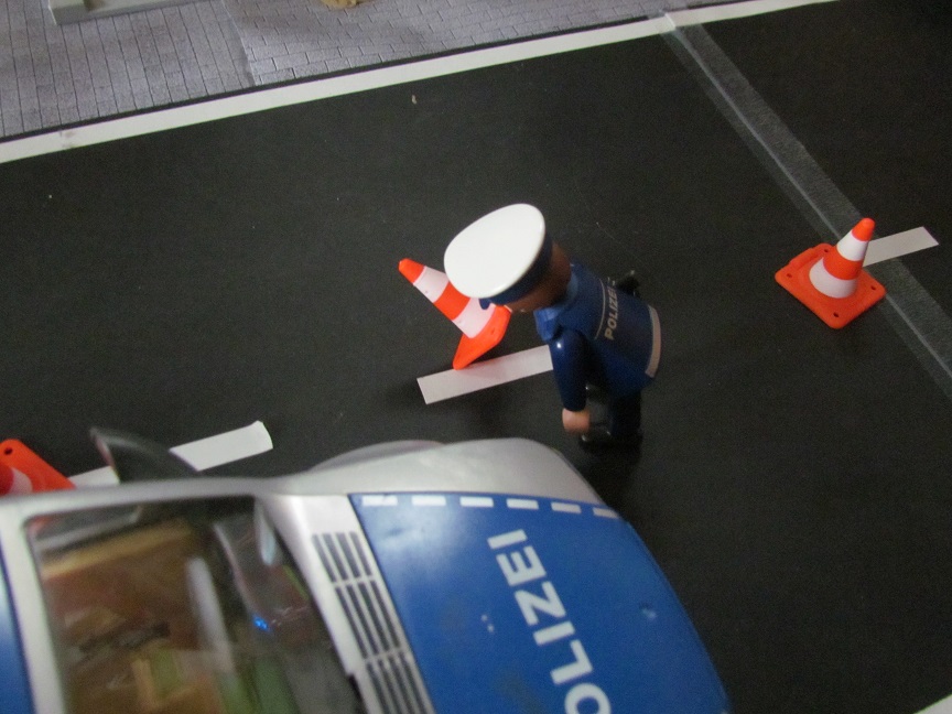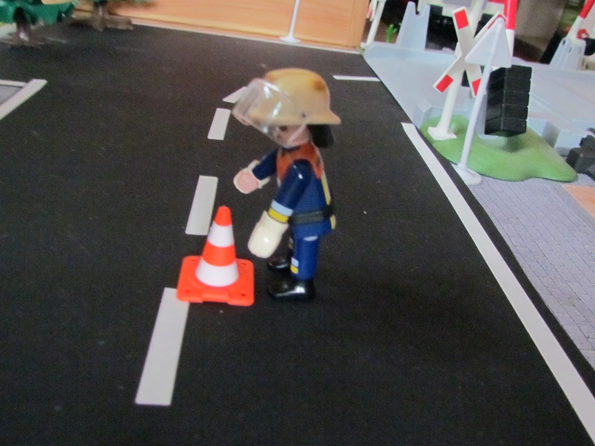 Sylvia: Hay. Also könntest Du die restlichen Leitkegel aufstellen?