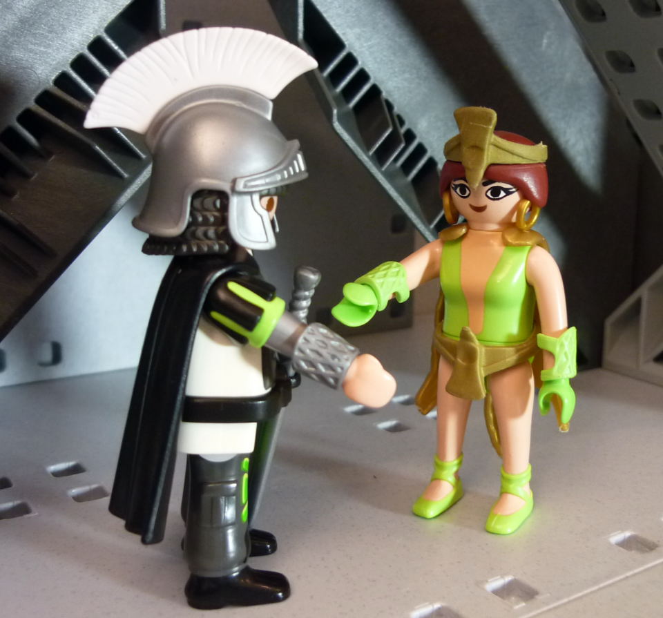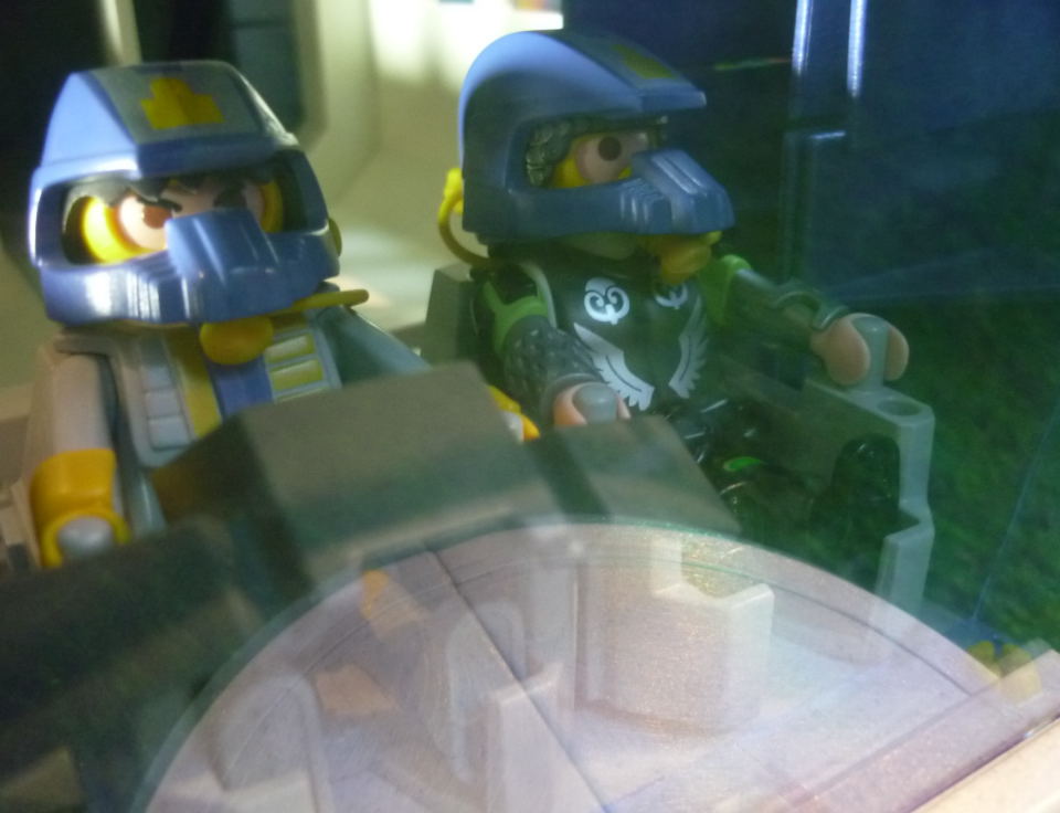 "Ich helfe Ihnen beim Anlegen des Insihelms. So und so und das da rein. Okay. Tribun, wir werden jetzt für 2 Stunden auf "Insane Speed" gehen. Auf kein Fall können Sie während dessen den Helm abnehmen. Auch nicht, wenn sie sich übergeben müssen. "Insane Speed" ist dreimal so schnell, wie Hyperraumgeschwindigkeit. Danach müssen wir für acht Stunden auf Hyperraumgeschwindigkeit gehen, damit sich der Organismus erholen kann. Dann könnten wir noch einmal eine zweistündige Insane-Speed-Einheit wagen. Je nachdem, wie es Ihnen geht."