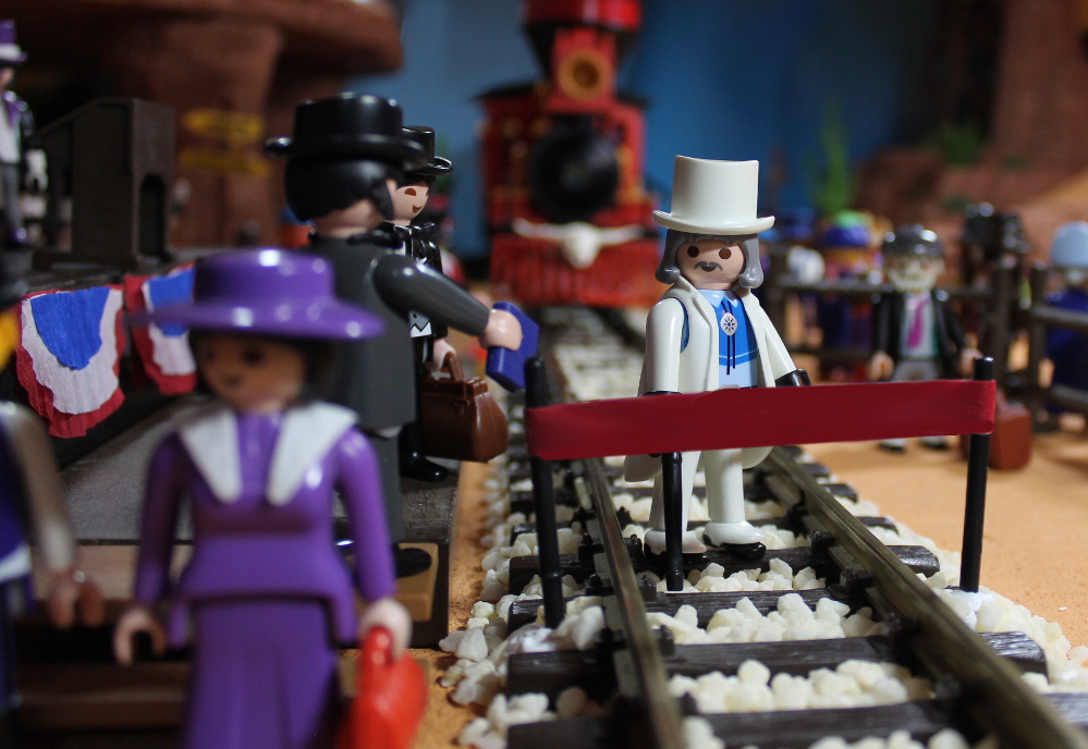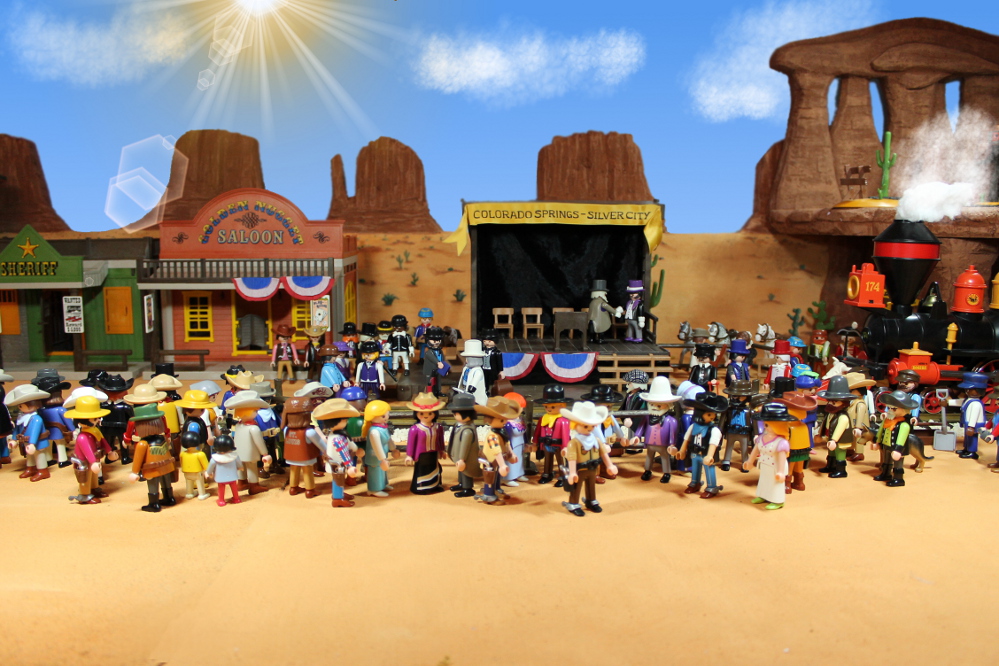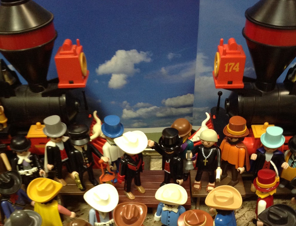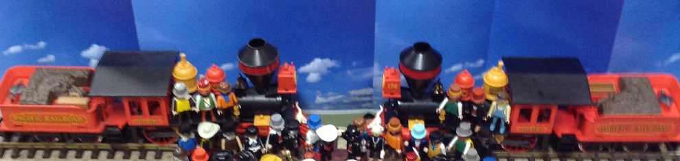 Hier treffen sich meine beiden Playmobil Baldwin 4-4-0 american Loks am Promontory Point in Utah zum Festakt - und zur feierlichen Eröffnung der First Transcontinental Railroad.