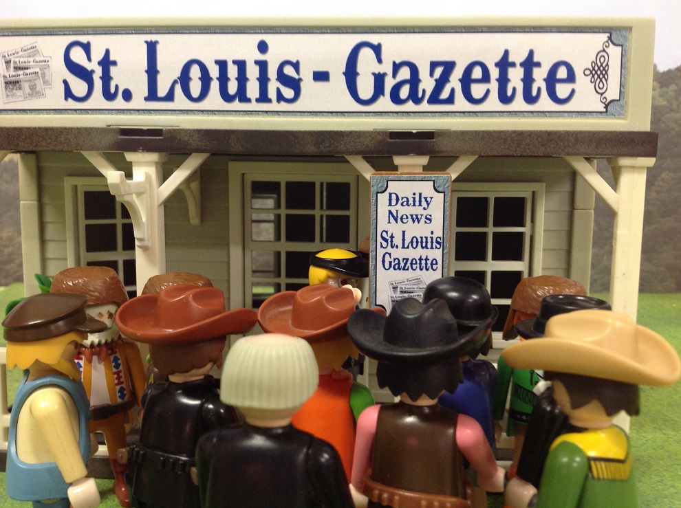 Bild: Ben, Gebäude der „Missouri-Gazette“ mit Menschentraube davor