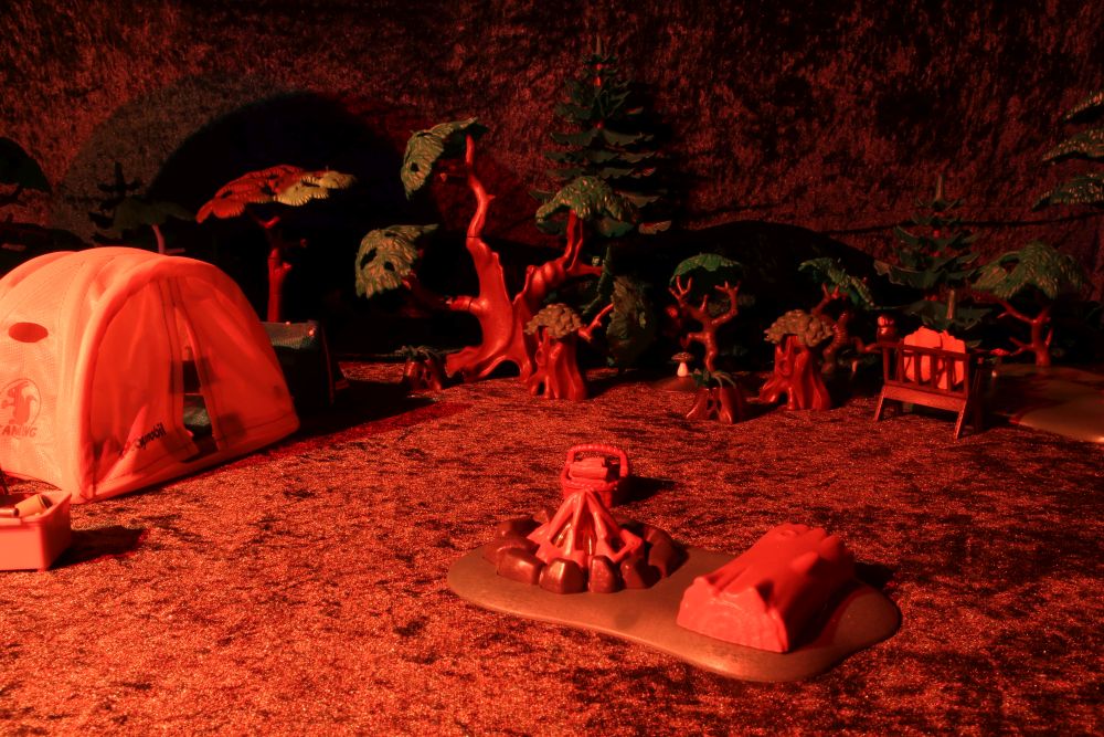 - Mitten in der Nacht wird Junior von einem Rascheln und Knacken geweckt. Leise krabbelt er zum Zelteingang und öffnet diesen vorsichtig.