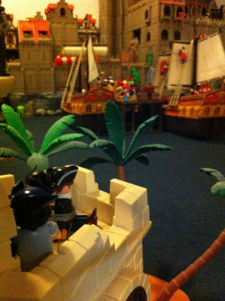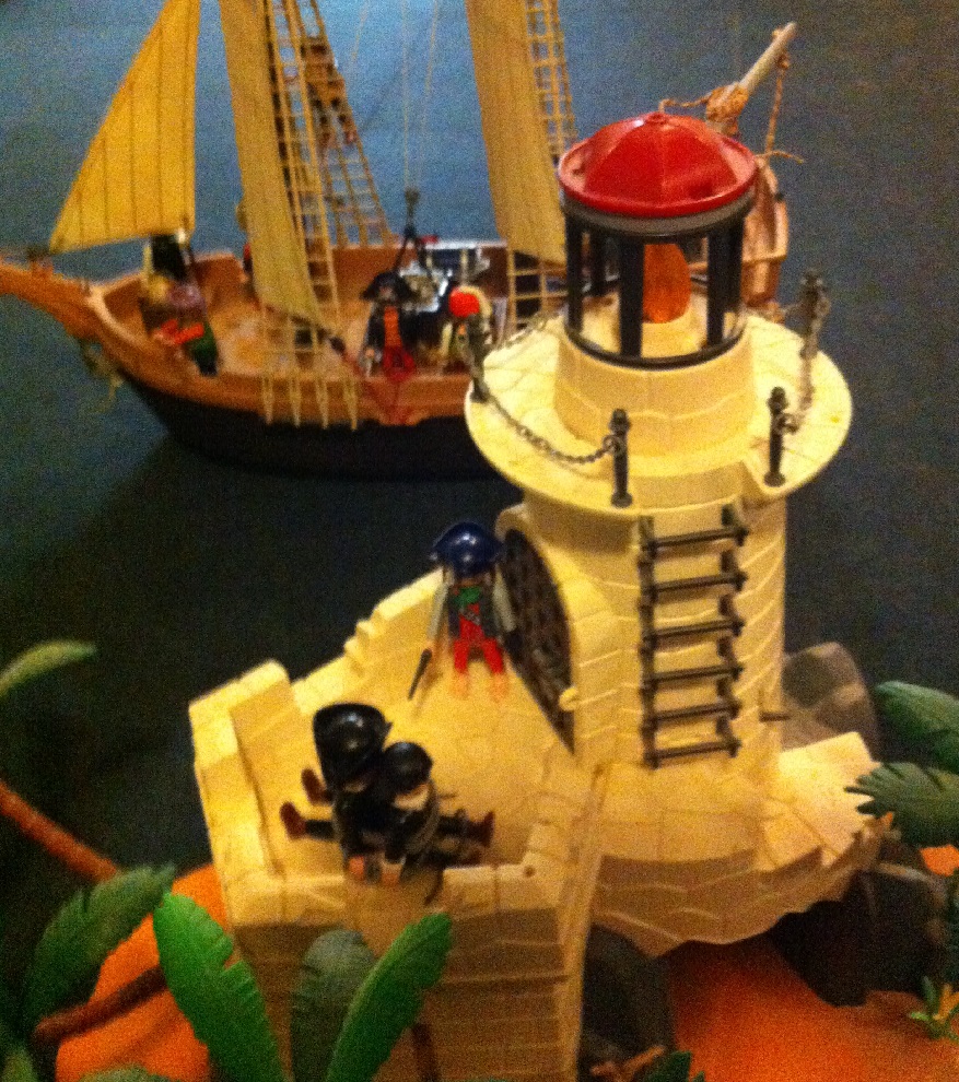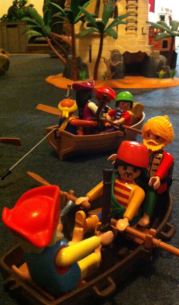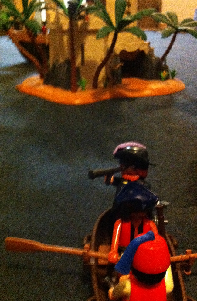 Am Abend schmiedeten wir einen Schlachtplan … zuerst musste der Wachturm ausgeschaltet werden, dazu wollten wir wieder auf harmlose Fischer machen und dann dort landen und die Besatzung überwältigen, bevor sie Alarm schlagen konnten. Wenn das gelang, sollte unsere Mannschaft mit dem Schiff am Turm anlegen. Und dann würde der gefährlichste Teil beginnen …..