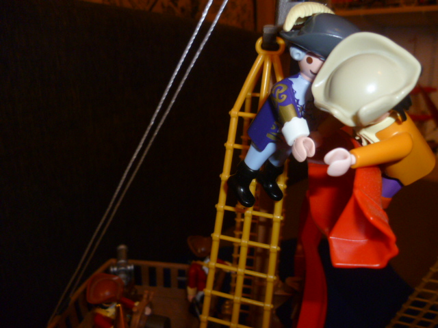 Während die Matrosen nochmal an Land ruderten, um einige seiner Sachen und seine treue Ziege zu holen, gingen die beiden nach vorne an den Bug, um so etwas für sich alleine zu sein...