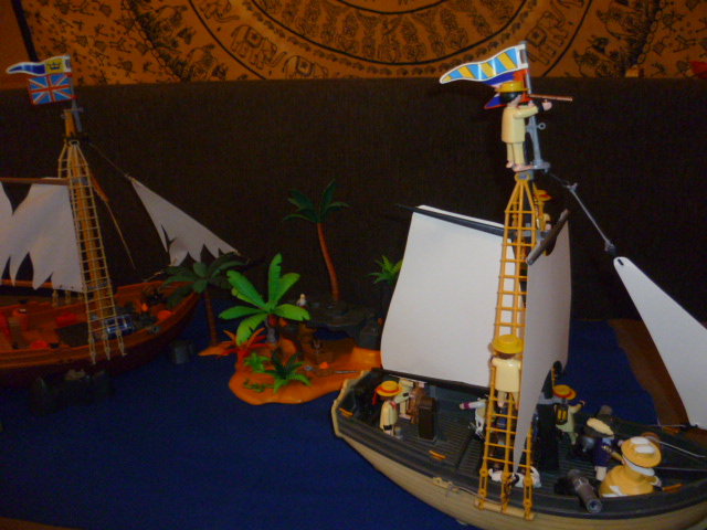 Die Matrosen auf beiden Schiffen ackerten, bis der Schweiß unter der Sonne in Strömen floss...!!!