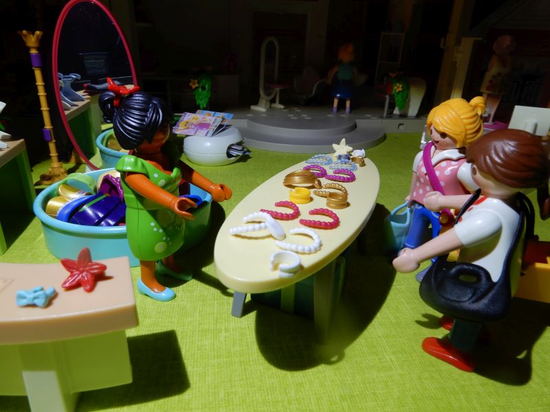 "Brauchen Sie nicht noch eine hübsche Halskette zu den Kleidern?" fragt die Verkäuferin zuvorkommend.
