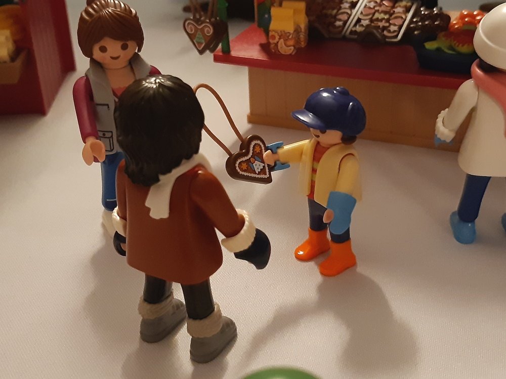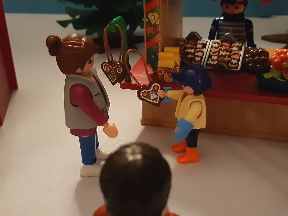 „Ich hätte gerne das Lebkuchenherz.“, sagt Lena zu dem Verkäufer.