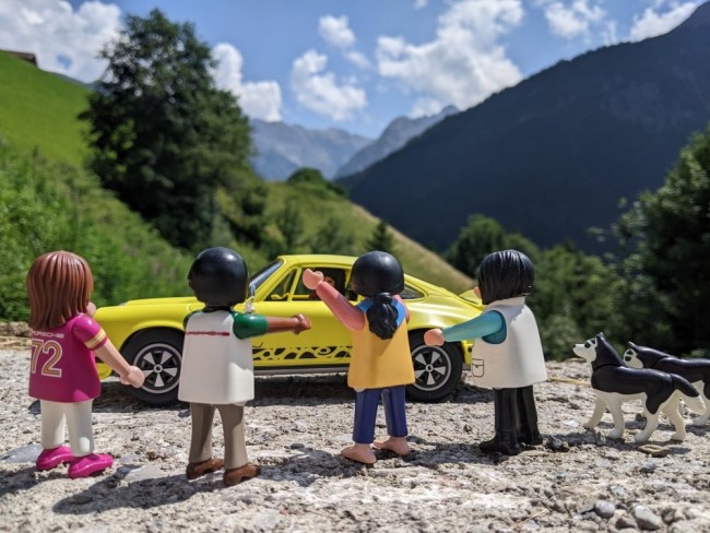 Voller Begeisterung liefen wir zum Porsche, der am Wegesrand halt machte.