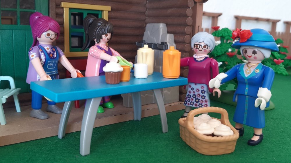 "Oh, das ist toll!" antwortete Annette. "Und sieh mal, da kommen die Omas." Oma Ellie trug einen Korb und winkte schon von weitem, Ruth trug zwei Thermoskannen. "Was habt ihr denn da mitgebracht?" frage Lucy. Oma Ruth strahlte sie an. "Wir müssen eure ersten Gäste doch vernünftig begrüßen. Ich habe Tee und Kaffee gekocht. Ich wusste ja nicht, was sie lieber trinken. Ellie hat Törtchen gebacken. Jetzt brauchen wir nur noch Tassen." Lucy und Annette holten Tassen aus ihrem Häuschen. "Was ist denn das für ein Sammelsurium?" empörte sich Oma Ellie. "Tja, Oma, hier ist noch alles ein bisschen provisorisch", schmunzelte Annette. "Aber Klara und Theo werden sich bestimmt nicht an nicht zusammen passenden Tassen stören."