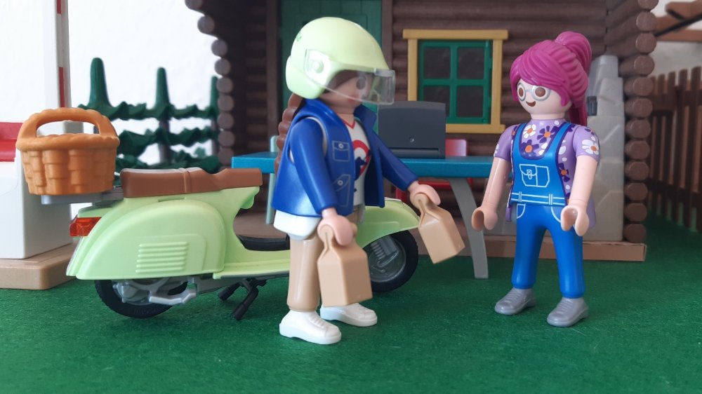 Als es schon fast dämmerte, hörte Annette ein lautes Hupen an der Einfahrt und lief zur Schranke. "Ihr braucht dringend eine Klingel!" rief eine Stimme. Vor der Schranke stand eine Frau mit ihrer Vespa.