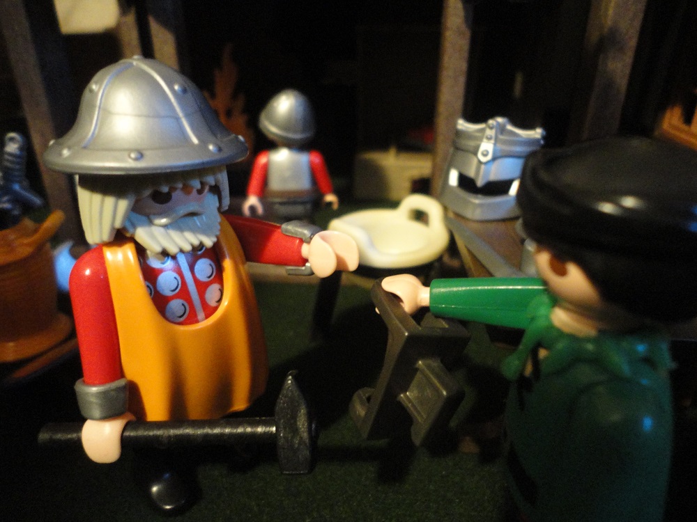 Schmied: „Crain, der Findelsohn der Grünholms, seid ebenfalls gegrüßt, wie kann ich euch helfen? Und du kleiner hast noch mal Glück. *Augenzwinger*
