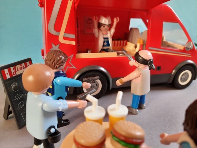 "Hallo, ich hätte gerne einen Hamburger und eine Limo."