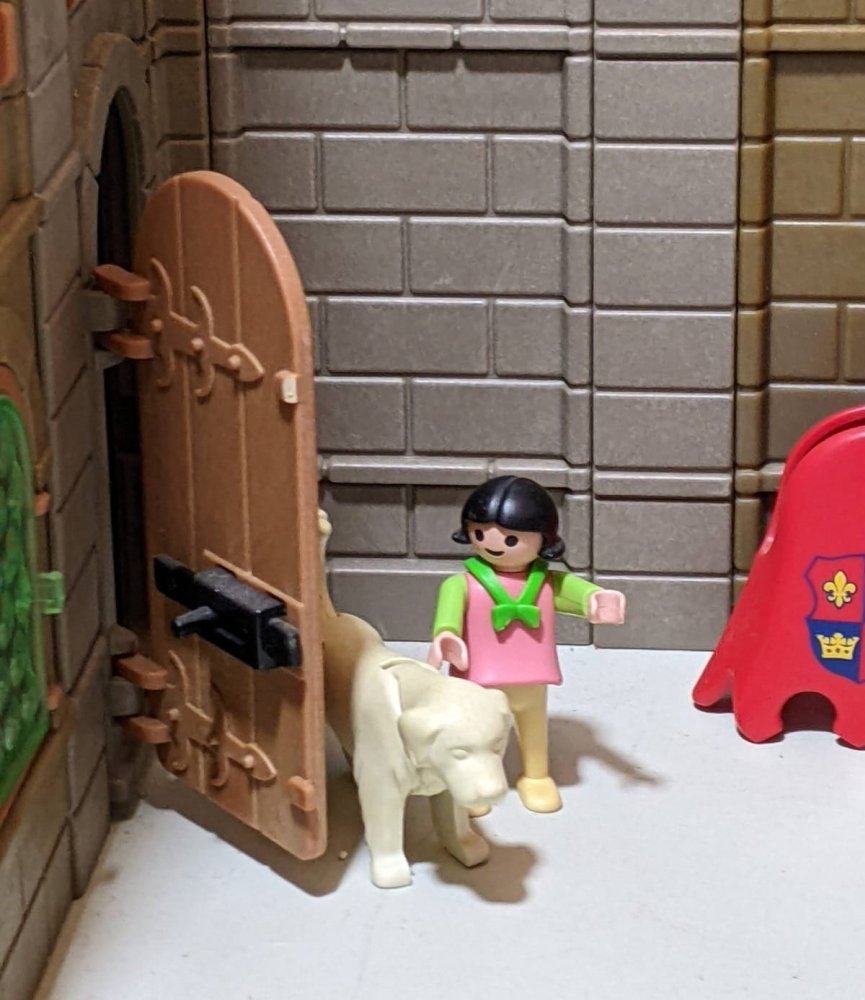 Als sie eintraten machte er einen tiefen Bückling, Rautgundis, seine Frau knixte und stellte ihre Tochter Ermentrude vor, die wiederum zeigte auf den großen weißen Hund und sagte. „Und das ist Parceval.“ Schwanzwedelnd begrüßte er die Neuankömmlinge. Fredeswind hielt sich im Hintergrund, während sich die anderen kurz unterhielten und beschlossen ihre Bekanntschaft demnächst zu vertiefen.