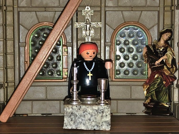 Nun stand ein Besuch bei dem Burggeistlichen Bruder Pancratius auf dem Plan. Sie trafen ihn in der kleinen Burgkapelle an, wo er gerade alles herrichtete für einen kurzen Abendgottesdienst. Auch er war hocherfreut, dass Fanny nun doch gut angekommen war und sprach: „Herzlich Willkommen auf Burg Adlerhorst, ich wünsche euch einen interessanten und angenehmen Aufenthalt unter Königin Fredeswinds Dach.“ Fanny dankte ihm.