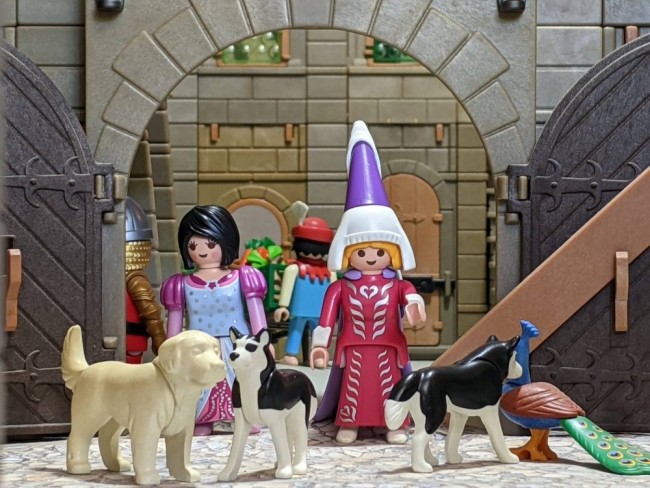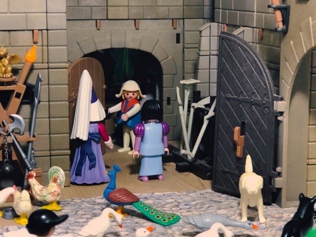 Plötzlich erklang ein schauerliches „Huhuhu, Huhuhu!“ Beide zuckten zusammen und schauten überrascht auf. Fanny fand zuerst ihre Sprache wieder: „Kann das sein, dass du ein Taggespenst auf deiner Burg wohnen hast?“ „Wie kommst du denn darauf?“ „Huhuhu, Huhuhu!“, ertönte es erneut. „Naja, weil es doch gerade Mittag geschlagen hat.“, meinte sie grinsend. Das Grinsen konnte ihr Gegenüber im Moment jedoch nicht sehen. „Das meinst du jetzt aber nicht ernst, oder?“, antwortete Fredeswind. - „Huhuhu, Huhuhu!“ - „Wieso?“, konterte diese. „Taggespenster geistern doch aber um diese Uhrzeit herum.“ „Ach was! Es gibt keine Gespenster!“, wies Fredeswind sie zurecht. Fanny stieß ihr den Ellenbogen leicht in die Seite und sprach lachend: „Aber das weiß ich doch!“ Fredeswind stimmte in ihr Lachen ein.