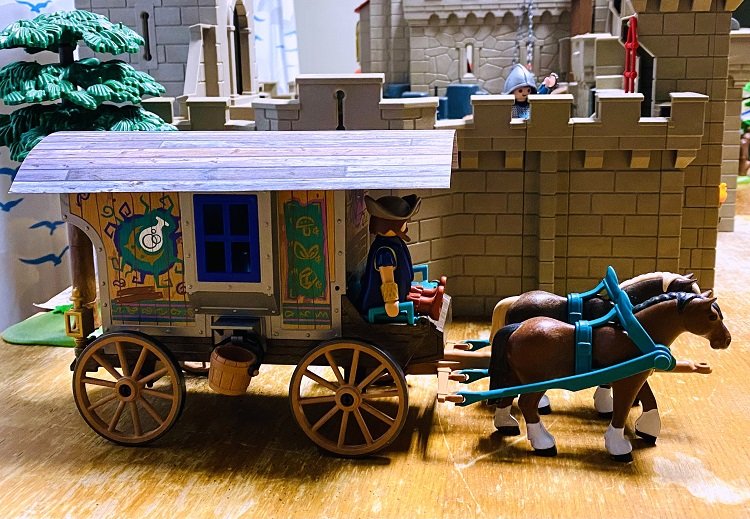 Man konnte das Getrappel von Pferden und das Quietschen der Räder eines Wagens hören.
