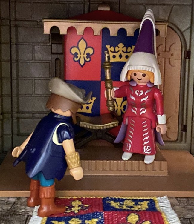 Fanny zeigte auf den Thron: „Darf ich mich da mal draufsetzen und das Zepter halten?“ Ihre Freundin lächelte: „Aber natürlich, warum denn nicht?“ Der Sitz war nicht sonderlich bequem, er erinnerte sie an einen Camping-Klapphocker, nur dass er dicker und mit edlem Stoff gepolstert war. Deshalb blieb sie auch nicht lange sitzen, stand auf, zeigte auf den Thron und reichte Fredeswind schmunzelnd das Zepter: „Naja, besonders bequem ist er ja nicht, aber es ist wohl Gewöhnungssache. Und das Szepter, so schön es auch ist, passt nicht zu mir, zu dir dafür umso besser.“ Fredeswind lachte: „Schließlich ist das hier nur mein ‚Büro‘ und nicht das Wohnzimmer, und solche Polstermöbel wie bei euch gibt es hier einfach nicht.“ Das leuchtete selbst Fanny ein.