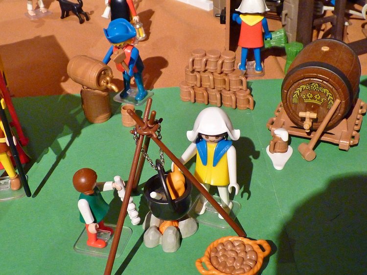 Auch für Getränke war bereits gesorgt. Auf der ganzen Wiese waren Fässer mit Wein und Bier aufgefahren worden. Zwischendrin wurde immer wieder in großen Töpfen massenhaft Suppe gekocht. Schließlich sollte ja niemand hungern müssen. Alles war aufs Beste vorbereitet.